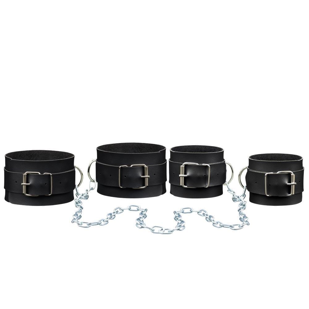 O ”Kit Fetiche Duo 3” da LA PIMIENTA é um kit composto por uma algema e um par de tornozeleiras com correntes. Confeccionadas artesanalmente em material sintético com revestimento interno aveludado. Ajustáveis e reguláveis de acordo com suas medidas para garantir conforto, fácil acomodação e uso correto de seu acessório. Possui detalhes de fivelas, fechos, travas e corrente em metal niquelado que asseguram qualidade e durabilidade.