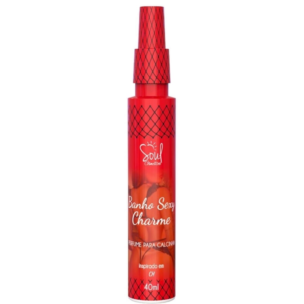 O perfume para calcinhas da "Banho Sexy CHARME”da marca Soul Cosméticos, em sua fórmula estão presentes substâncias que encapsulam as bactérias que causam o cheiro, os aromas incríveis inspirados em grandes marcas de perfuma, dando aquele requinte para o perfume, é prático, pode ser levado na bolsa da academia, da balada, do trabalho etc.