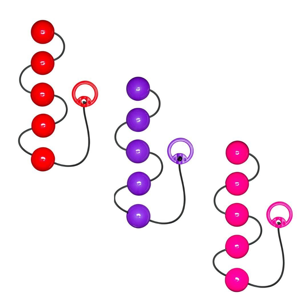 São 5 esferas feitas em material rígido à prova d'água unidas por um fio de silicone que proporciona uma agradável e excitante massagem na musculatura, com o movimento orientado de contrações e relaxamento (aperta e solta).
