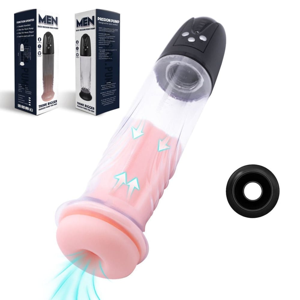 Possui 4 modos de sucção e 4 intensidades, acompanha um anel de silicone tradicional e um anel em cyber com orifício penetrável. É ótima para tratar a ejaculação precoce, a impotência masculina e desenvolver o órgão masculino, além de melhorar a irrigação sanguínea do pênis proporcionando melhor ereção.
