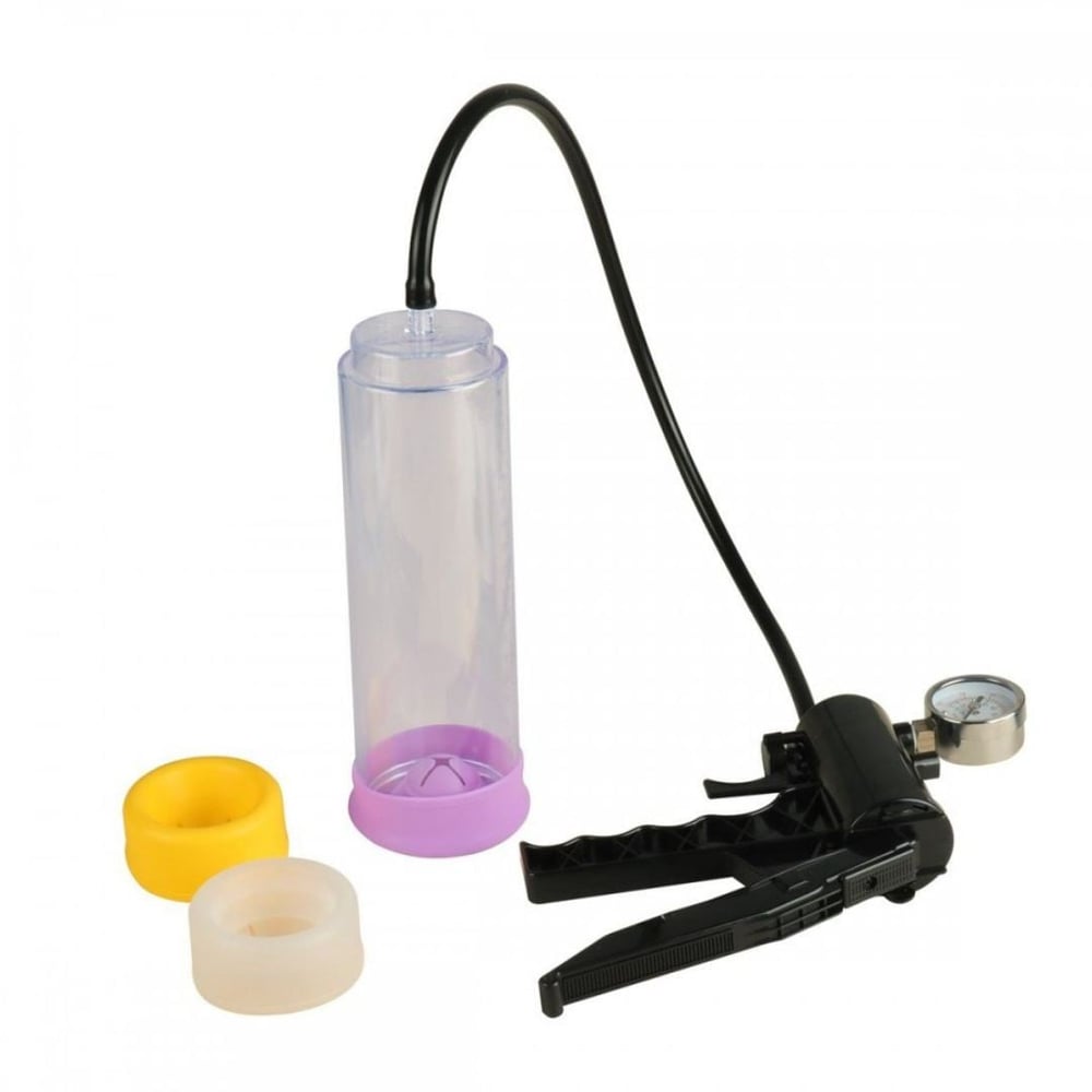A Bomba Peniana PENILE BOOSTERda Vibe Toysé um produto desenvolvido para ativar a circulação sanguínea auxiliando no combate a disfunção erétil, aumento do tamanho e largura do pênis (podendo variar de 1 a 2cm). Possui gatilho de sucção e relógio de pressão, possui mangueira flexível e anel em silicone. Ótima para tratar a ejaculação precoce, a impotência masculina e desenvolver o órgão masculino. Melhora a irrigação sanguínea do pênis proporcionando melhor ereção.. O produto é composto por um cilindro transparente que conta com um medidor de pressão, aneis de silicone, mangueira e válvula para bombear.