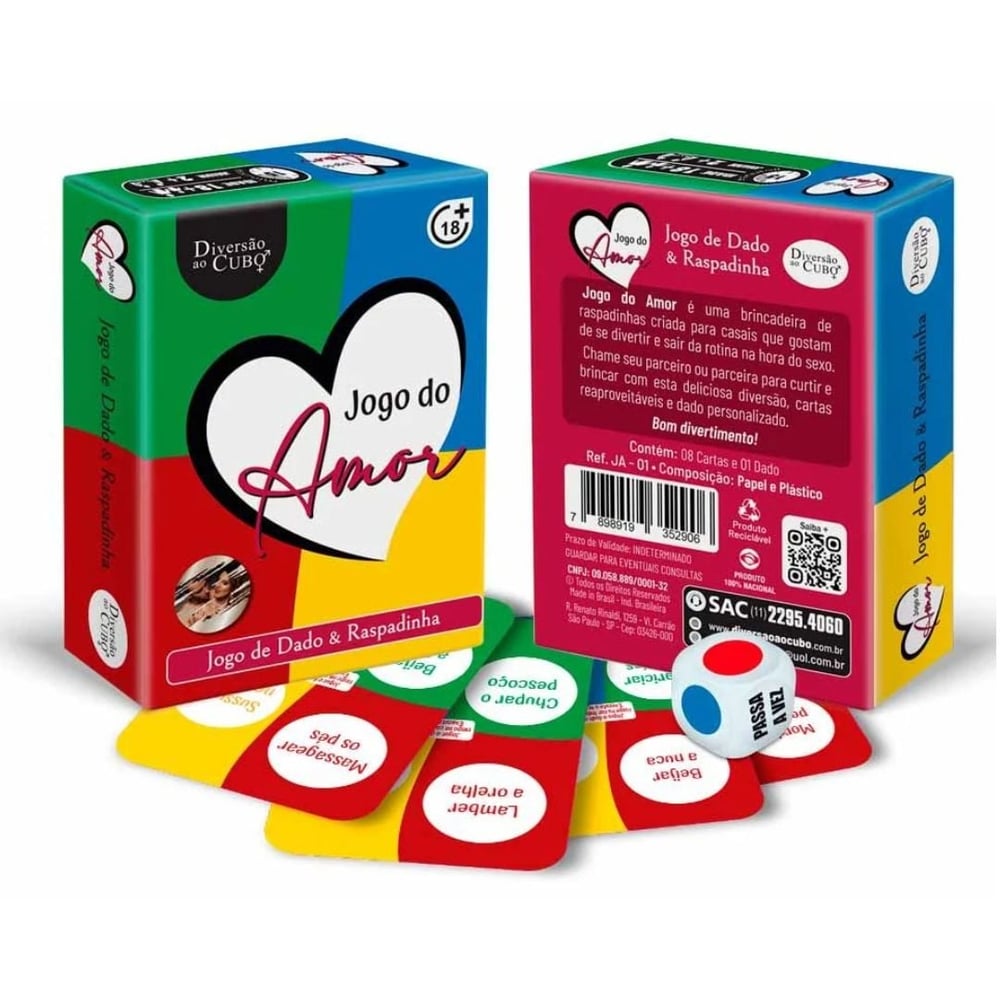 O Jogo do Amor da DIVERSÃO AO CUBO é um jogo com 1 dadinho e 7 raspadinhas com comandos de carícias como: “Beijar a nuca”, “Lamber a orelha”, “Beijar a boca”... dentre outras. O jogo é ideal para criar mais intimidade e experimentar novas sensações. 😉