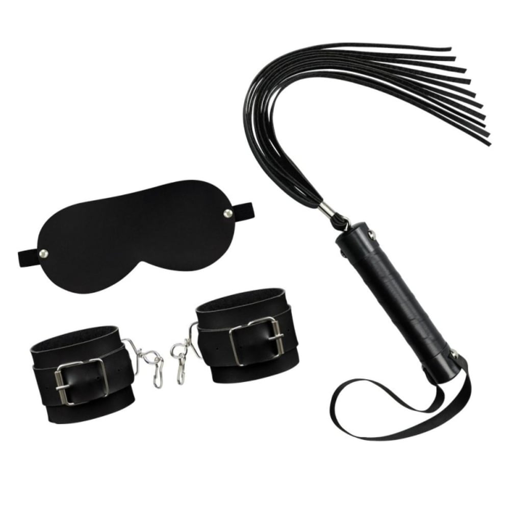 O kit conta com esses 3 acessórios:Chicote: O estímulo das chicotadas aumenta a circulação na pele, deixando a região mais quente e sensível ao toque, proporcionando um aumento significativo do prazer... Colocando o poder nas mãos do dominante e o contato do acessório com a pele, cria um som instigante e excitante. Escolha áreas menos delicadas, como coxas e bumbum, e começar de leve, testando os limites do parceiro, e vai progredindo com as chicotadas.