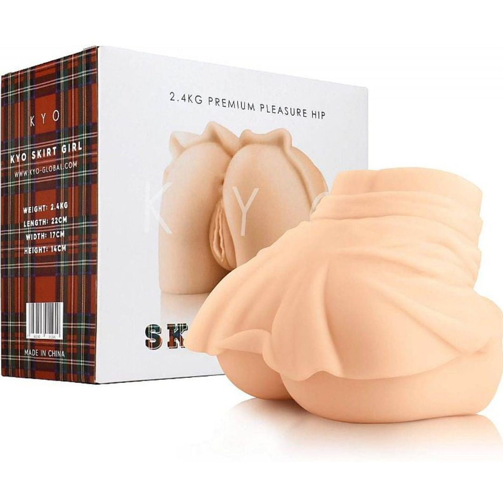 O masturbador Kyo Skirt Girl possui um lindo formato de bunda com saia, pensado para trazer o máximo de prazer e uma sensação bem real durante seu uso. Tem vagina e ânus, ambos possuem texturas, para um maior conforto durante a penetração.