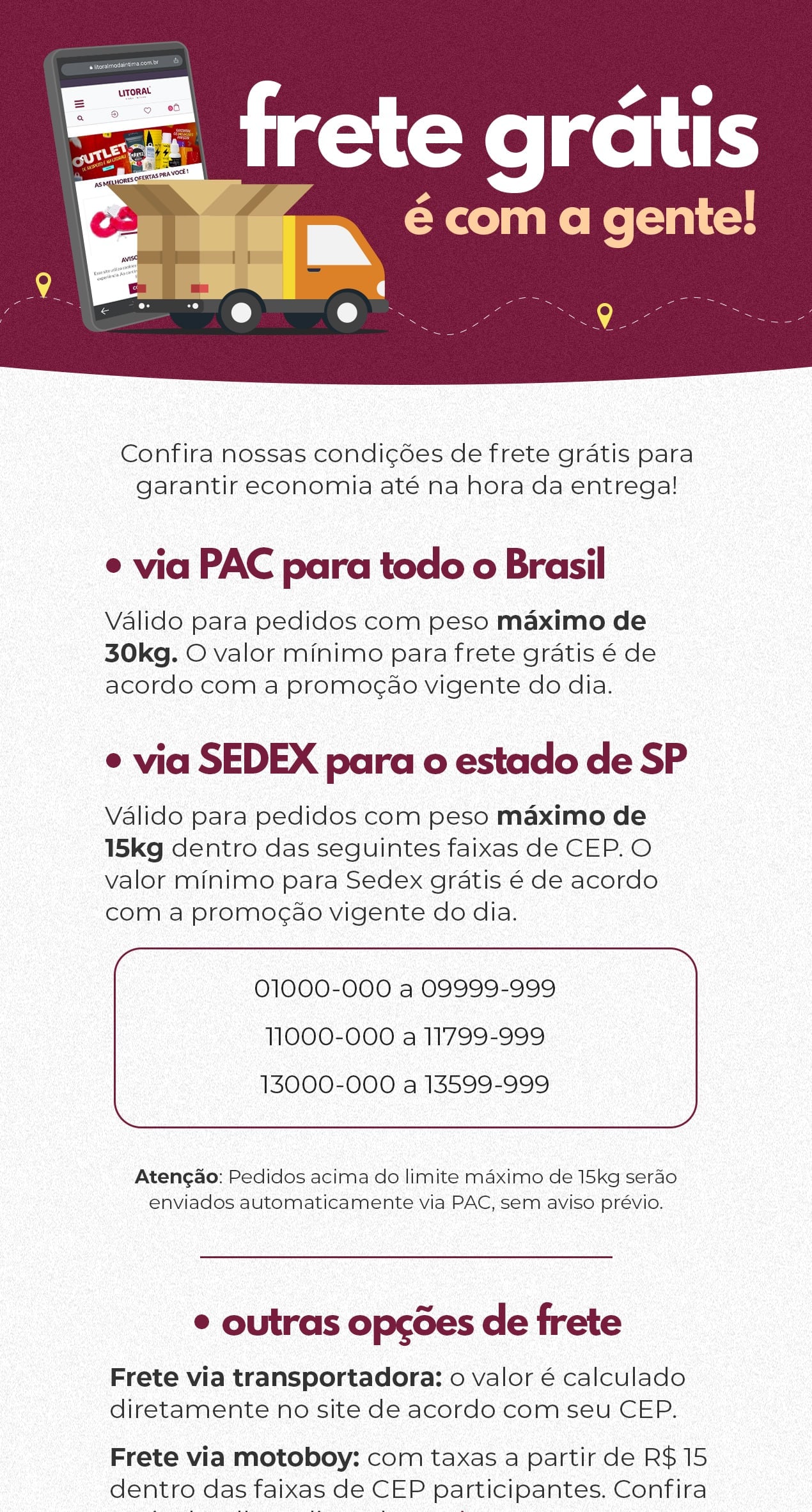 Confira nossas condições de frete grátis