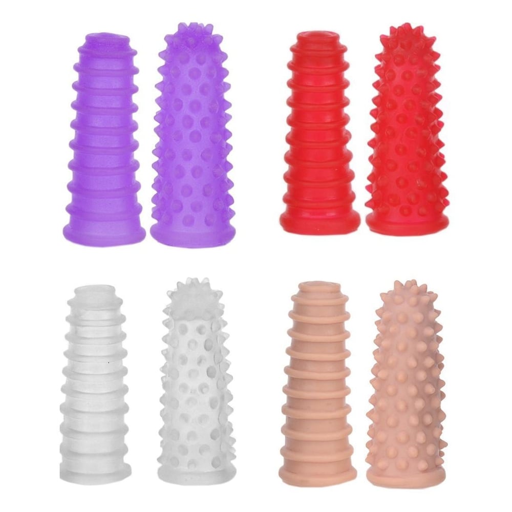 Capa De Dedo 2 Unidades Reto Ktoy, composto por 2 capas estimuladoras para dedos feitas de gel, uma com nódulos massageadores e outra com texturas aneladas.