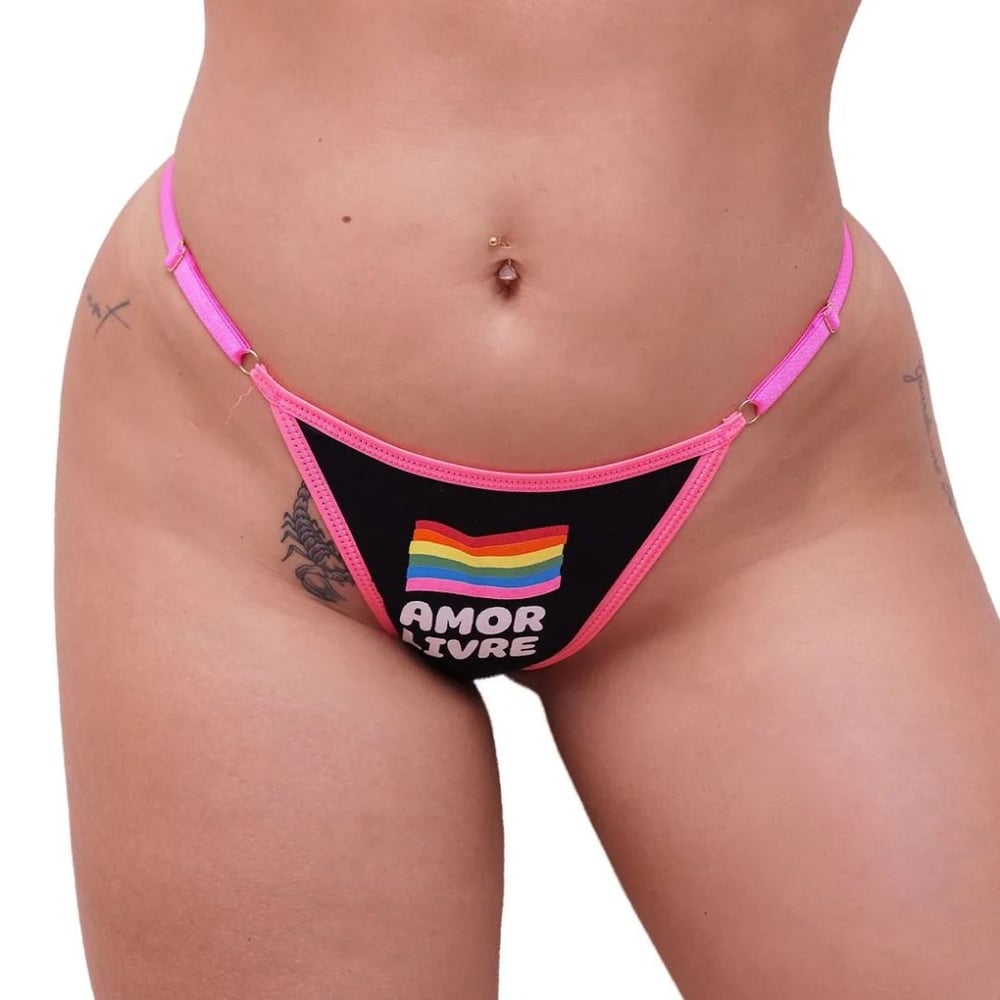 A calcinha FOLIA da Tallyta Moda Apimentada é um modelo fio dental com a frase: ”Amor Livre"🏳️🌈 na parte frontal para mandar aquele recado ousado e ter um momento divertido com o (a) parceiro (a).😏