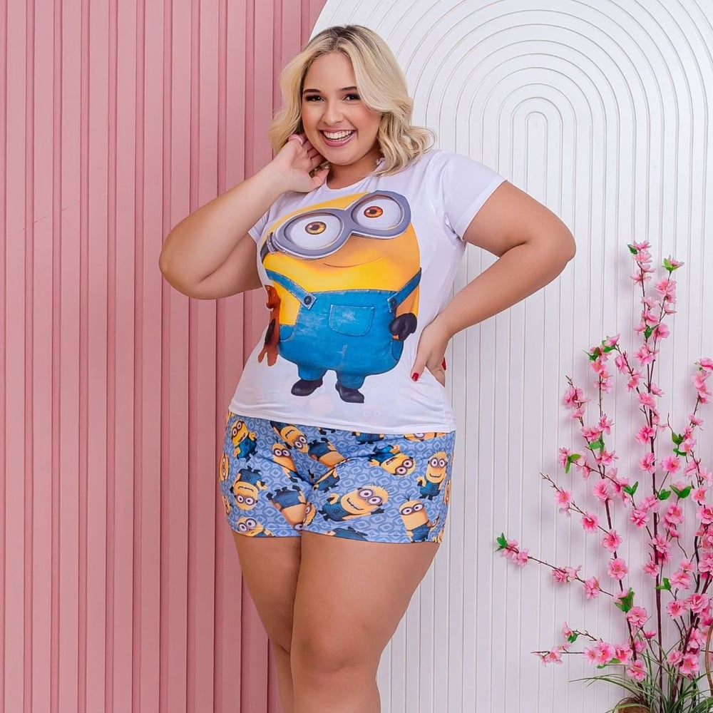 ❇Blusinha estilo baby look, super confortável e aconchegante. Possui uma linda estampa central da "Minions", a estampa reflete o espírito alegre e moderno para que seu look para dormir não seja algo simples, afinal, você merece o melhor em todos os momentos!🤩