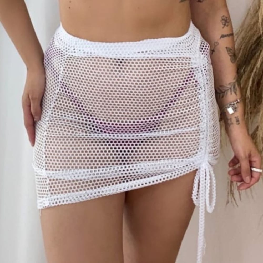 As saídas de praia são peças essenciais para quem quer um look prático e estiloso na praia ou na piscina. Existem diversos estilos, como esse modelo que é uma linda Saia Arrastão Curta super estilosa e moderna. Ela possui um cordão que permite diminuir e deixar um "frisado" na peça.