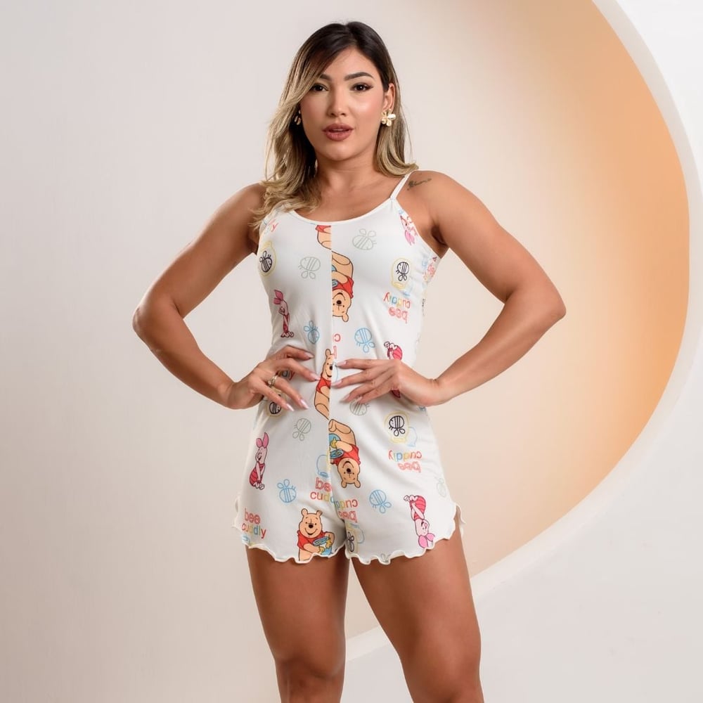 O Pijama Macaquinho possui alças finas e linda estampa dos personagens Ursinho Pooh e seu amigo "Leitão" . É uma peça fofa que vai fazer com que você se sinta abraçada. Ele é o toque delicado que faltava em seu corpo para você ter uma excelente noite de sono. 🤗