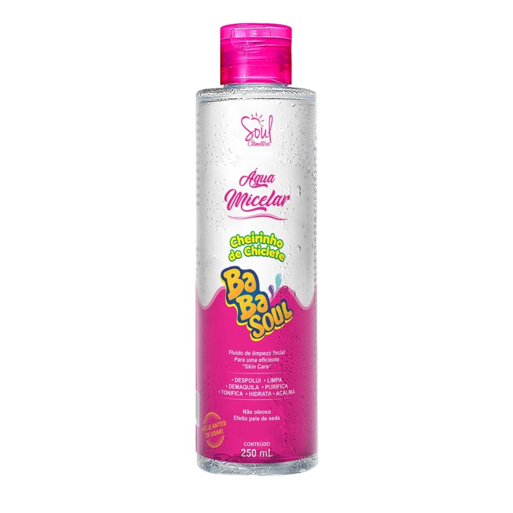 A Água Micelar Babasoul é um cuidado multifuncional essencial para todos os tipos de pele. Sua fórmula leve combina micelas inteligentes que agem como ímãs, capturando impurezas, oleosidade e maquiagem com suavidade e eficácia. Em um só passo, ela demaquila, limpa, acalma, tonifica e hidrata, e muito mais... deixando a pele fresca, equilibrada e pronta para os próximos cuidados. Além de ter um cheirinho de chiclete para tornar esse momento de "Skin Care" ainda mais gostoso e importante para o cuidado da sua pele. 🍃