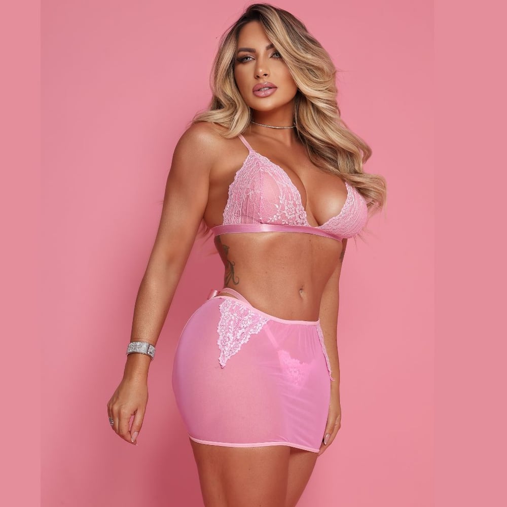 O Conjunto Sensual com Saia Glow é uma peça que celebra o luxo e sensualidade com um toque irresistivelmente ousado. Com delicados detalhes, este conjunto revela a sensualidade de forma sutil e envolvente, despertando olhares e desejos com elegância. O desenho da peça valoriza o colo, realça a cintura e acompanha as linhas do corpo com suavidade, exaltando a silhueta feminina de maneira envolvente. 😉