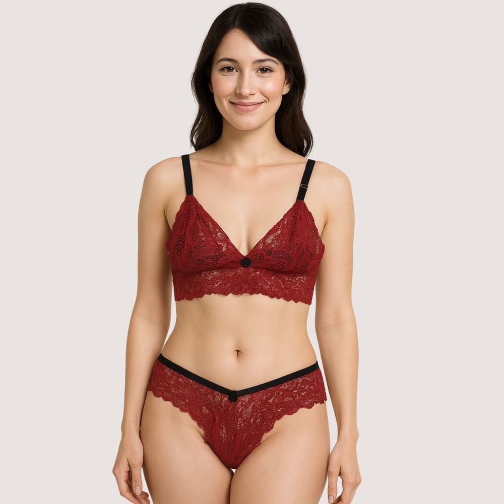 O Conjunto Sensual da MIL TOQUES é uma linda lingerie toda confeccionada em renda com detalhes encantadores. É super charmoso e confortável. O sutiã não possui bojo e aro, as alças são finas, fixas e com amarração para melhor ajuste ao corpo.
