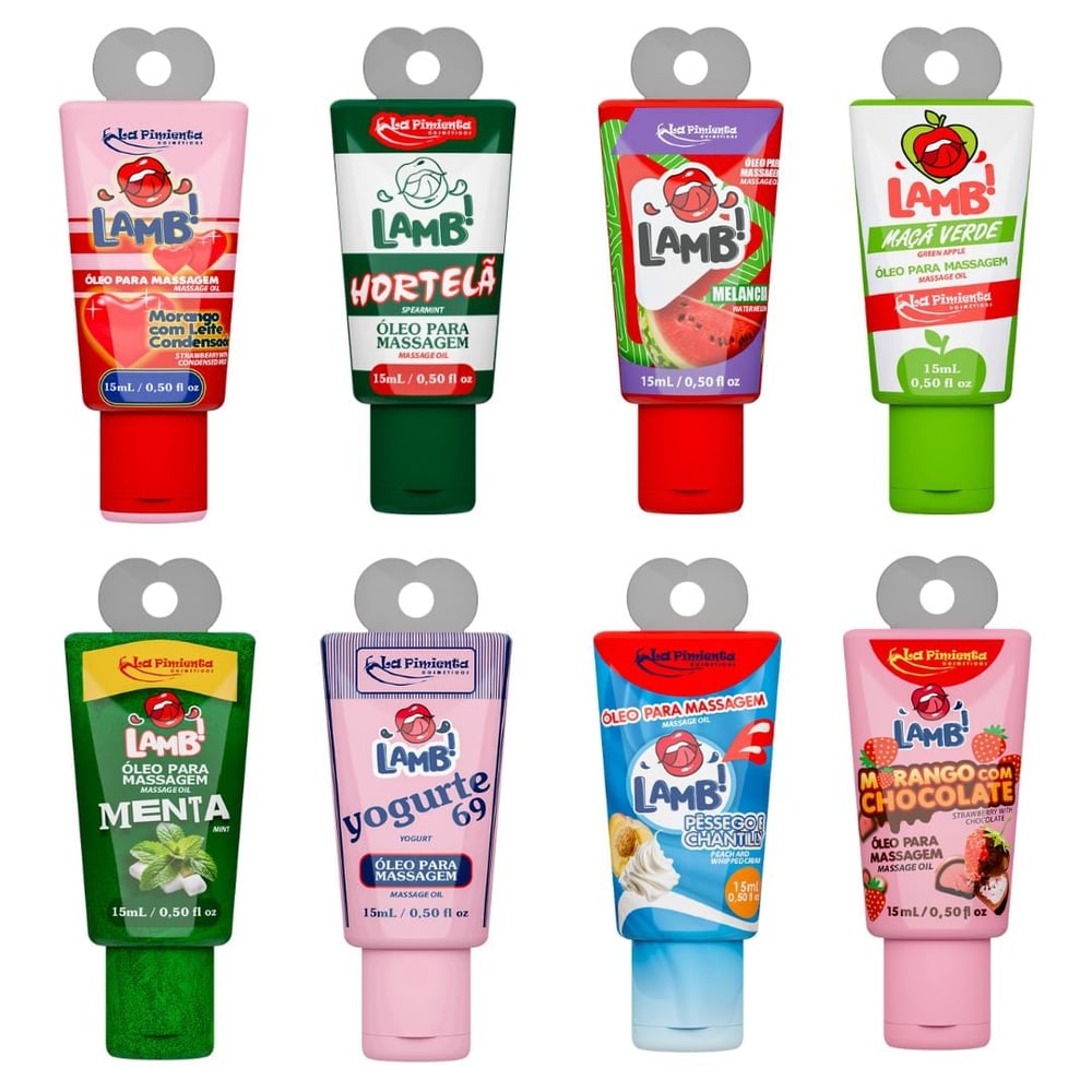 Disponível em 8 sabores irresistíveis — menta, iorgute, hortelã, melancia, maçã verde, morango com chocolate, pêssego com chantilly e morango com leite condensado — o óleo é perfeito para tornar o momento mais íntimo, divertido e saboroso. Além de proporcionar uma massagem relaxante, o óleo pode ser beijado e saboreado diretamente sobre a pele, intensificando a conexão entre o casal. Vai deixar o sexo oral ainda mais gotoso, descubra agora a sensação que só LAMB tem. 🌶️