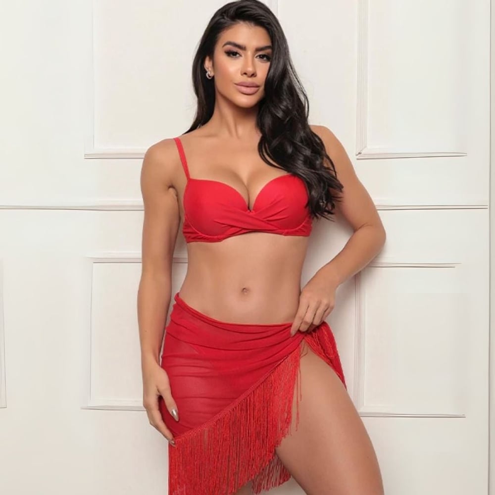 Um biquíni que une sofisticação e charme em cada detalhe. O sutiã possui bojo delicado as alças são finas e firmes, já a calcinha possui regulagem o que dá um toque exclusivo e delicado que transforma esse biquíni em uma peça confortável e linda. Pra completar o look esse biquíni acompanha canga saída de praia. O biquíni se completa, as alças de amarras e o caimento perfeito valorizam o busto com elegância, enquanto a modelagem clássica garante conforto e versatilidade. Ideal para quem busca um visual moderno, feminino e refinado para brilhar em qualquer ocasião à beira-mar ou piscina. 🥰☺️