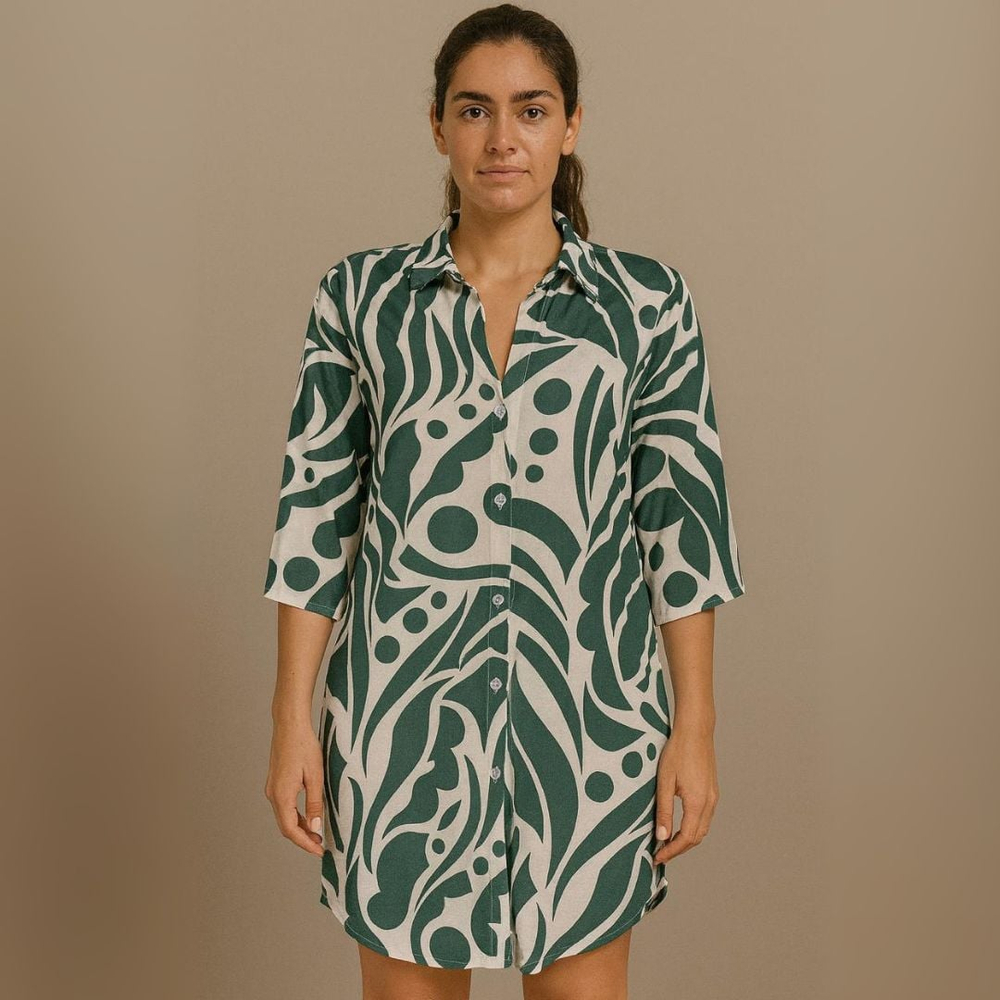 Versátil, leve e sofisticada, a saída de praia em modelo camisão chamise é a escolha perfeita para quem busca unir conforto e elegância no verão. Com diversas estampas exclusivas, a peça transmite modernidade e personalidade, valorizando cada detalhe do look. Nessa versão vem com a estampa natureza, ideal para dias quentes em contato com a natureza. 🌳🍃🌞