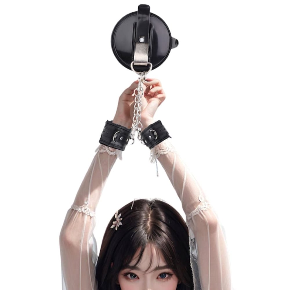 Essas algemas são ajustáveis com fivelas metálicas que permitem um encaixe seguro e personalizado. Esse design oferece firmeza sem abrir mão da suavidade, tornando o acessório ideal tanto para iniciantes quanto para quem já tem experiência em práticas de dominação consensual. 🤤 Além disso, o contraste entre os materiais — o couro rígido e a pelúcia macia — adiciona um elemento visual e tátil interessante à experiência. O destaque fica por conta da ventosa de fixação, para apimentar ainda mais aquele momento a dois para a prática do BSDM. 🔥