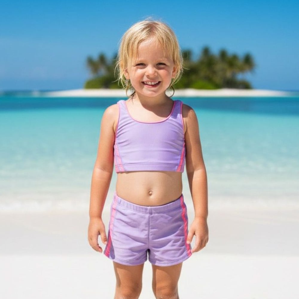As cores divertidas dão vida ao biquíni e fazem cada criança se sentir única. Um estilo minimalista, mas cheio de personalidade que estimulam a imaginação e combinam com a alegria do universo infantil. Entre cores intensas encantadores, o modelo se destaca por unir estilo, diversão e qualidade em uma única peça. 🥰☀️