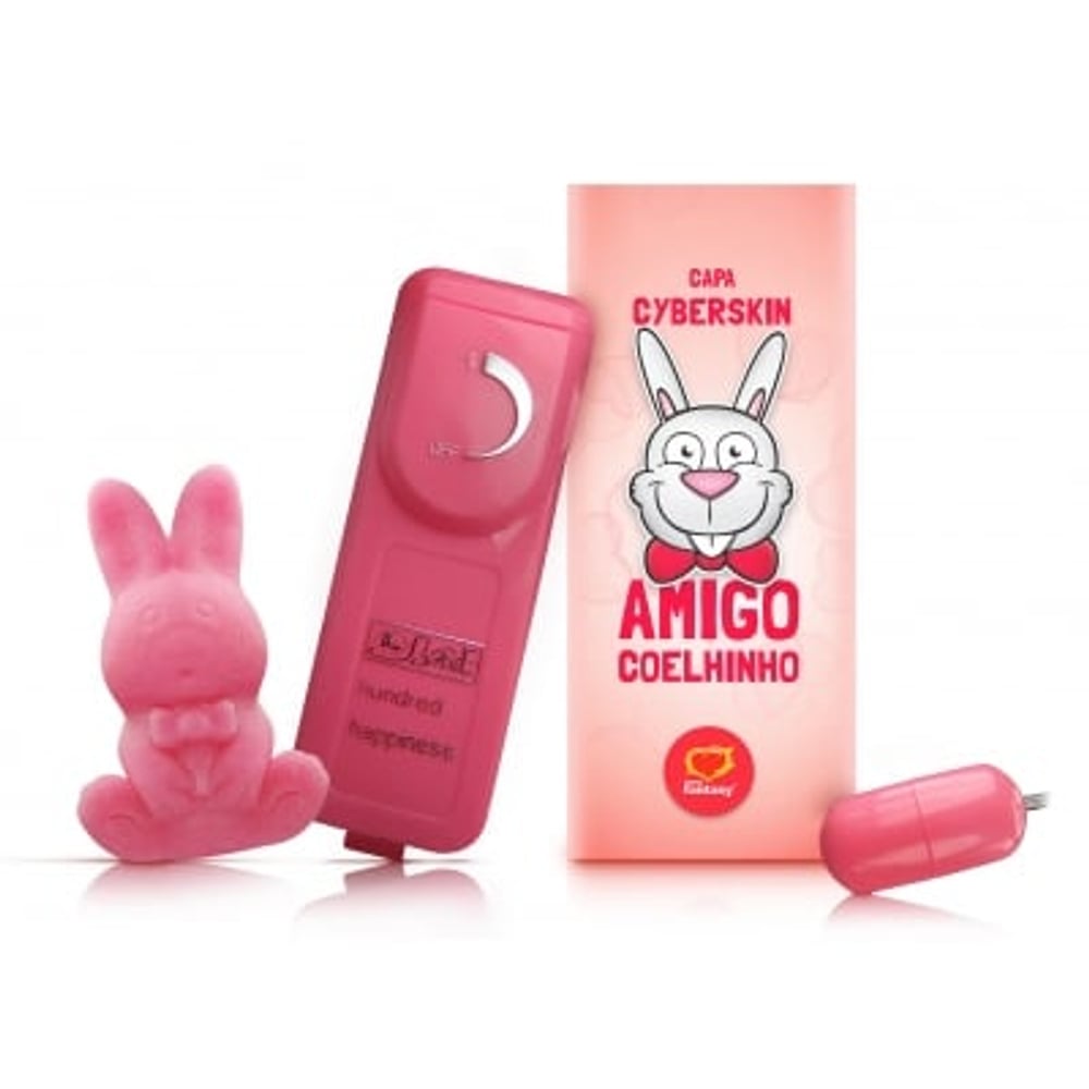1 Capa em CyberSkin em Formato de Coelho Cor Rosa Néon;