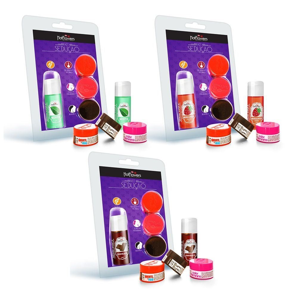 Kit Sedução Hot Flowers é a forma compacta de quatro produtos da linha Hot Flowers, para deixar sua relação mais apimentada e divertida!