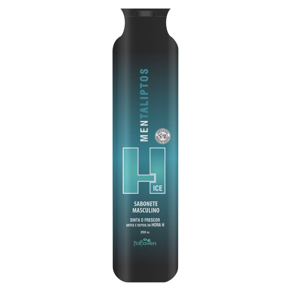 H Ice Sabonete Intimo Masculino 130ml Hot Flowers, sabonete líquido masculino que normaliza o nível de pH na região, limpa profundamente e refresca a pele.