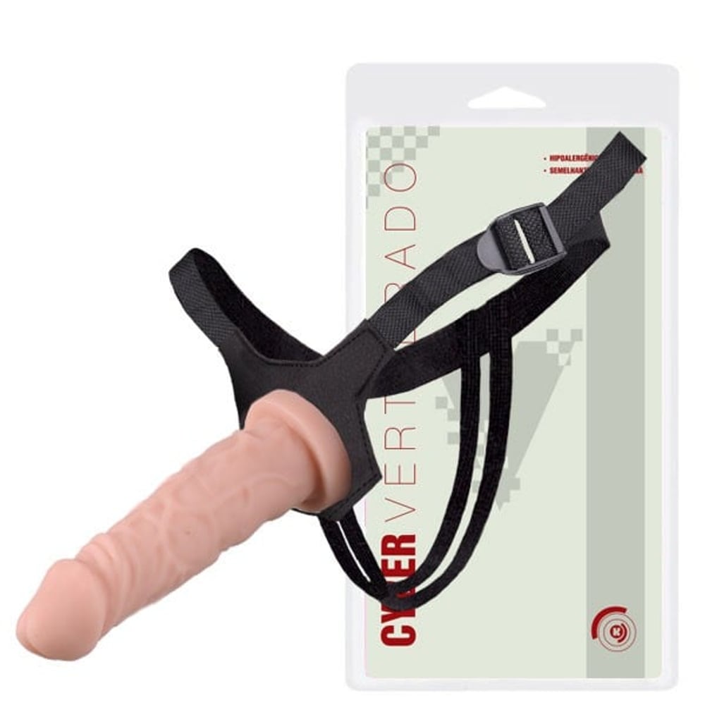 Cinta elastica com pênis em cyber grosso com acoplamento de rosca para fixar em cintas. O pênis possui estrutura interna vertebrada, permite que curvaturas para várias posições.