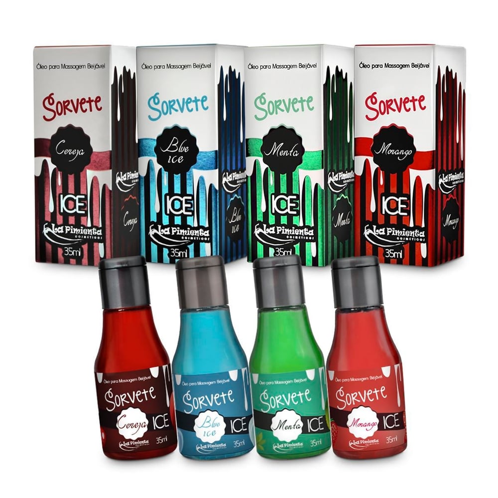 Óleo Beijável para massagem "Sorvete Ice" da La Pimienta é um Gel Beijável com sabores ideias para fazer uma massagem corporal e cair de boca a qualquer momento.