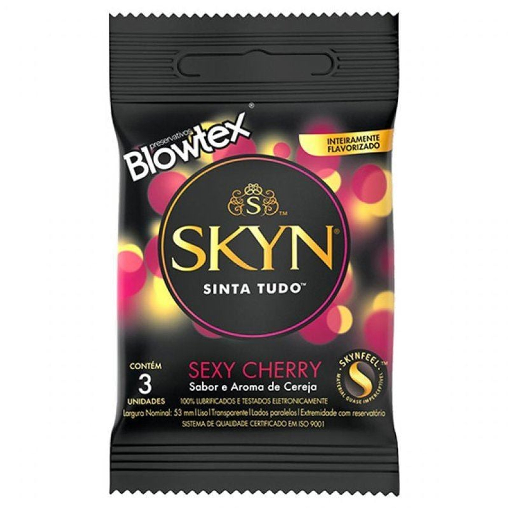 O "Blowtex Skin Sexy Cherry" é um preservativo totalmente flavorizado, ou seja, com sabor e aroma de cereja. Sua fórmula não contém látex natural, é feito de borracha poliisopreno, um material revolucionário, que gera a sensação de não estar usando nada.