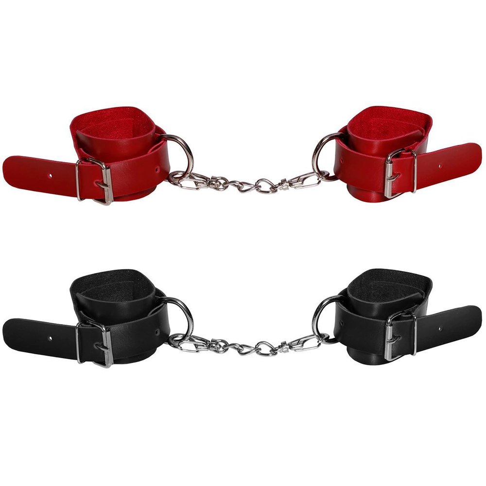O " Bracelete Proença" da Dominatrix confeccionado em Bedin, laminado com PVC, no modela algema possui mosquetaão e corrente.
