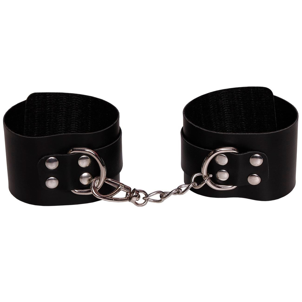 A "Tornozeleira Módena" da Dominatrix confeccionado em Bedin, laminado com PVC, possui Mosquetão e corrente.