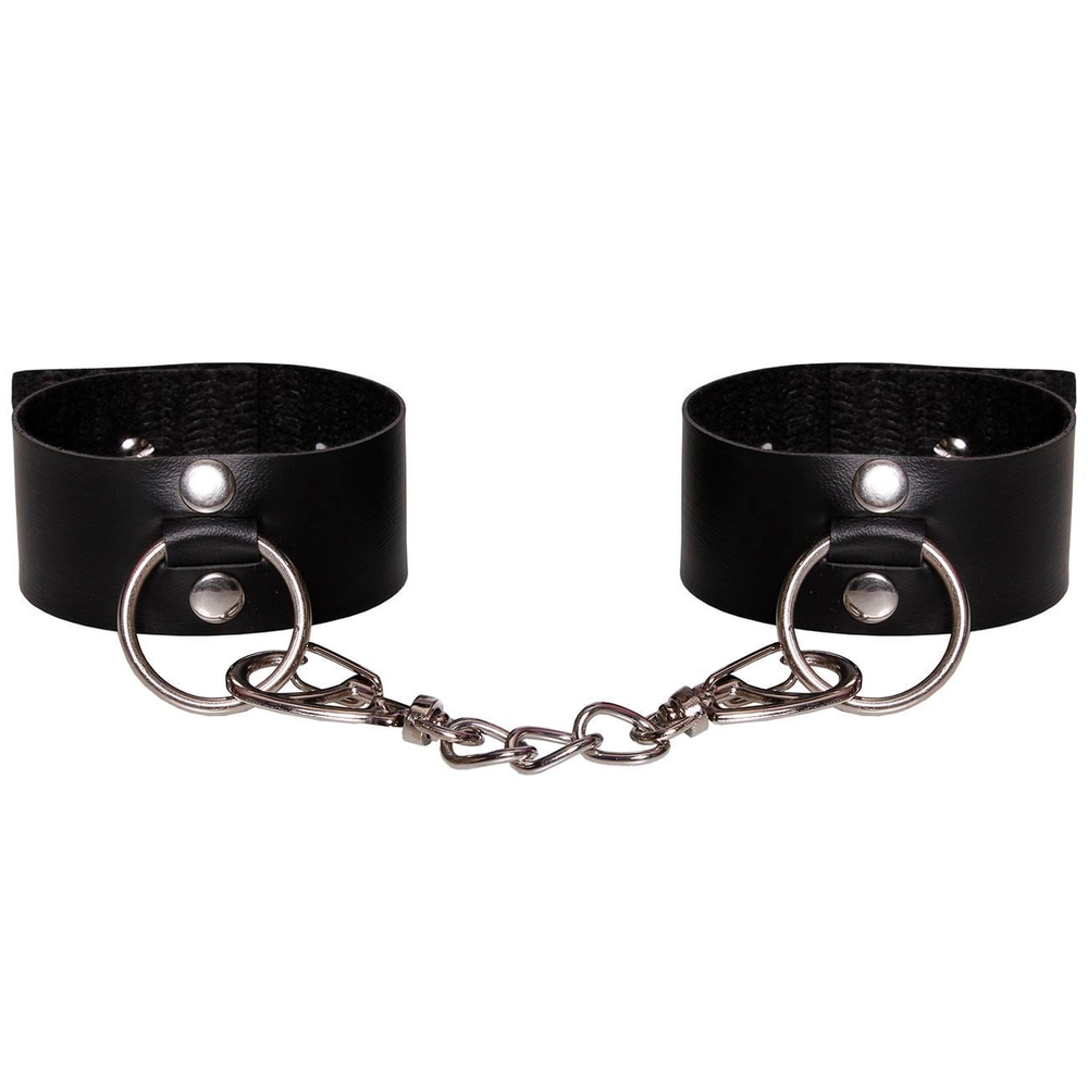 A "Algema Latina" da Dominatrix confeccionado em Bedin, laminado com PVC, possui fivela com corrente.