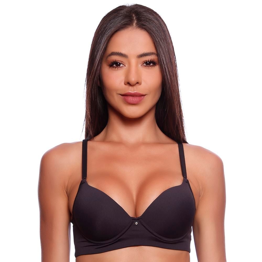 O sutiã é um misto de conforto e tecnologia. Com aro, possui bojo em espuma soft (muito confortável) estilo “casquinha, que levanta, sustenta, firma e aproxima os seios. As alças são médias, fixas e com regulagem. A parte de trás permite ajuste ideal às costas com conforto e leveza, além de, por ser um pouco mais larguinha acomoda e disfarça as temidas gordurinhas que ficam em baixo do braço.