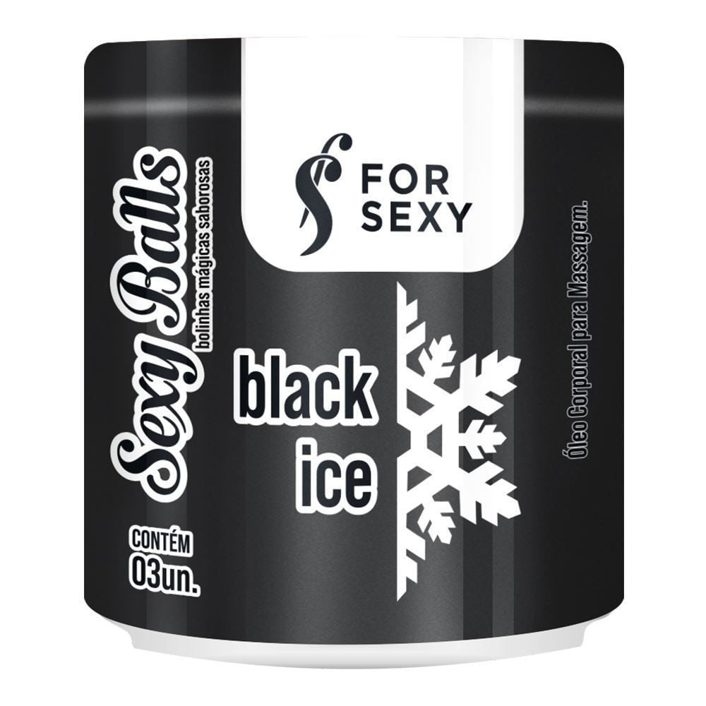 A "Black Ice" da linha Sexy Balls beijáveis em bolinha da ForSexy é feita em cápsulas de óleos com extratos que excitam, umidificam, esfria e ainda lubrifica. Se dissolvem com a umidade e com o calor, podendo ser estouradas no corpo e utilizadas como óleo para massagem além de ter uma ação de refriamente potente e deliciosa, para deixar ainda mais prazeroso esse momento. Ela foi desenvolvida para deixar a relação muito mais intensa e prazerosa, experimente coisas novas, crie momentos agradáveis e usufrua de todo a liberdade de poder ousar na relação e sentir ainda mais prazer.