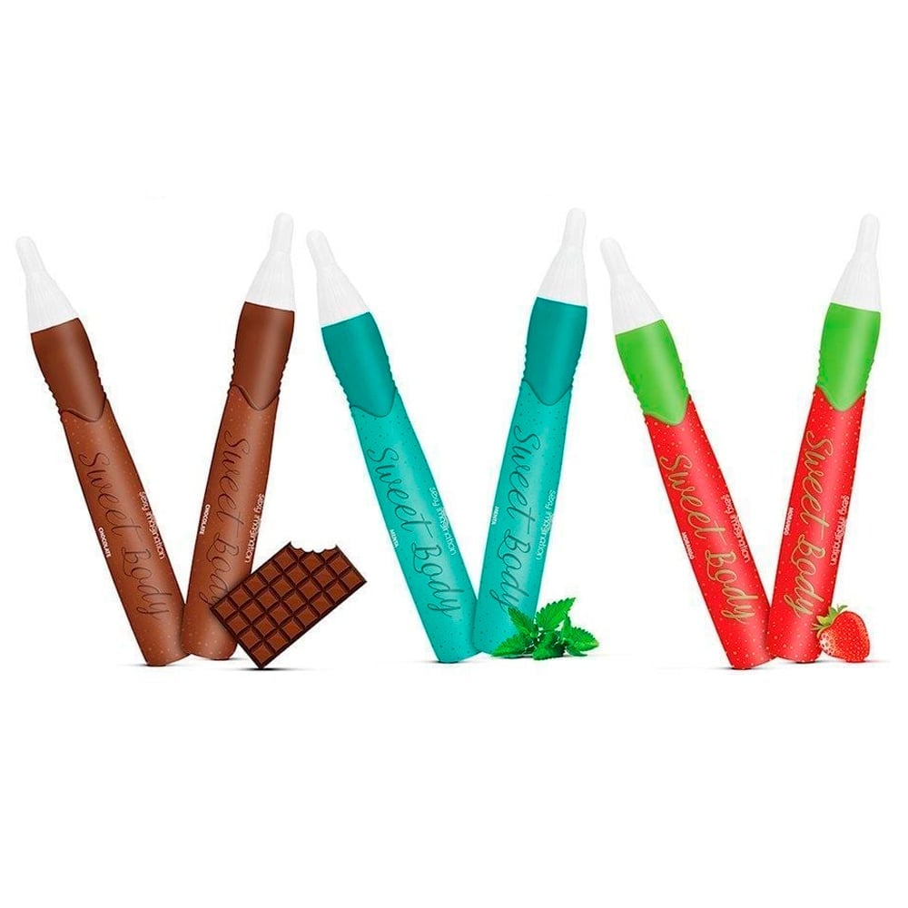 As Canetas Sweet Body da linha Sexy Imagination são recheadas com deliciosas coberturas que não mancham a pele. Foram desenvolvidas para desenhar no corpo. Ouse e deixe a imaginação fluir!