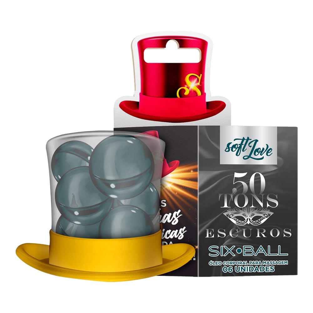 Six Ball 50 Tons Escuros da SOFT LOVE - “A Fantástica Fábrica do Prazer” é um kit com 06cápsulas gelatinosas explosivas perfeitas para você descobrir o segredo para noites intensas de paixão e prazer. Ele esquenta🔥 pulsa💓 e vibra⚡ de forma intensa.