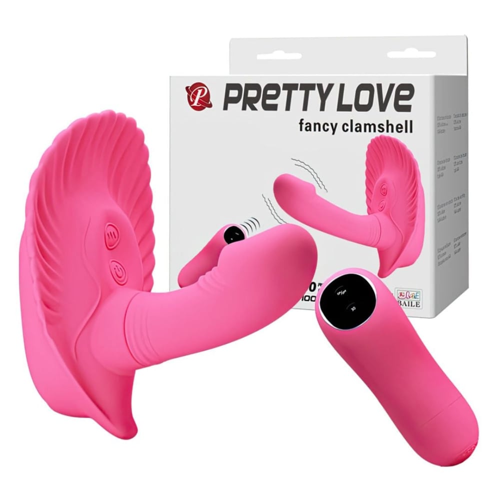 O vibrador Fancy Clamshell da PRETTY LOVE possui design inovador e toque super macio e aveludado. Ele conta com um penetrador com formato de "mini pênis" com glande que estimula de forma intensa o ponto g, possui também um estimulador clitoriano com formato de concha. O vibrador tem formato anatômico que se encaixa com precisão no clitóris, proporcionando uma vibração intensa que fará você chegar ao orgasmo em poucos minutos. 😍